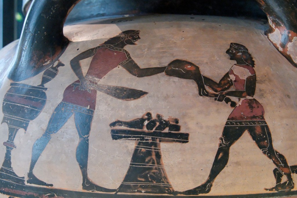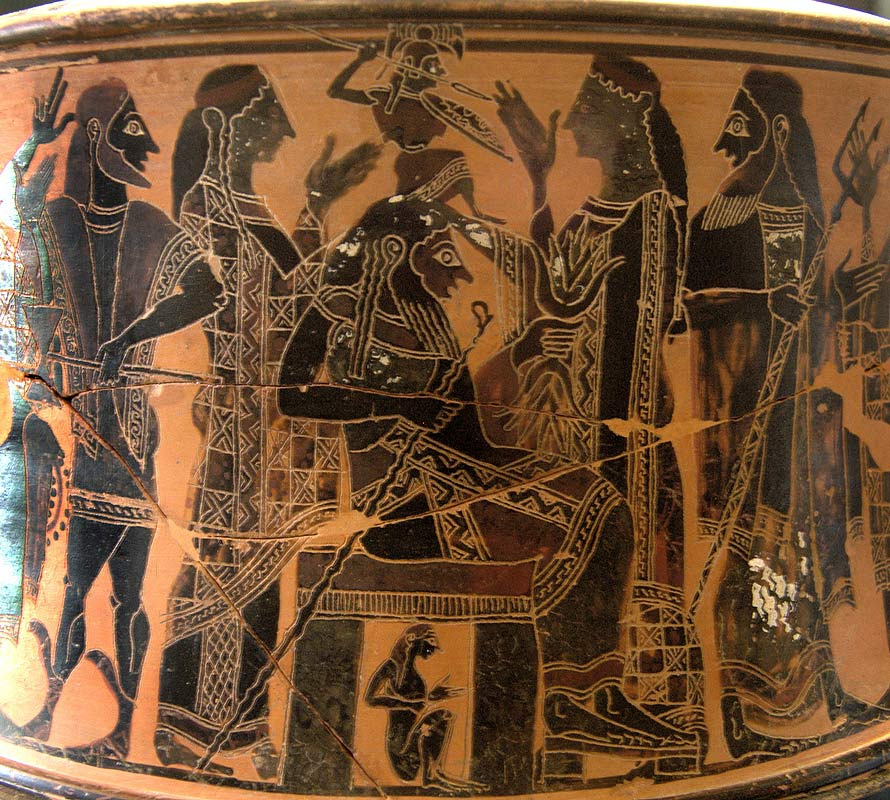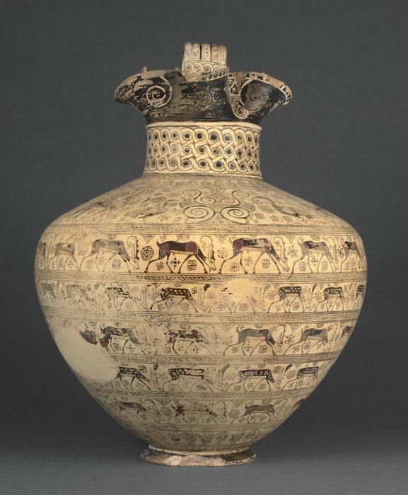 Niobid Krater, 460 B.C. Slaughter of the suitors by Odysseus and Telemachus, Campanian red-figure bell-krater, c. 330 BC. Bell idol. Terracotta figurine, 7th century BC. Exaleiptron tripod, attic, black figures 570 BC. Eurytios Krater, 600 B.C. loutrophoros anatalos painter. Oinochoe Levy, 8th century BC.